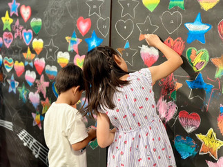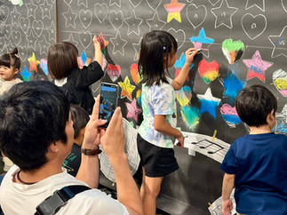 大きな黒板に皆で作品を描いて、完成作品は館内に展示をします。