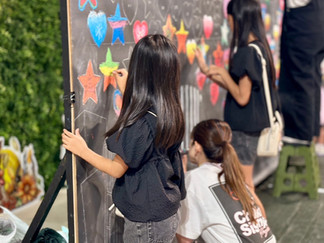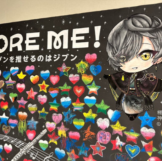 登場した約7mのキャンバスに、オリジナルの星やハートを描きました。