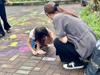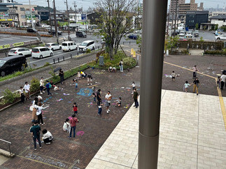 施設のテーマ『「MORE ME!」 もっとジブンを楽しもう』を大切に、路上に自由にお絵描きしよう!