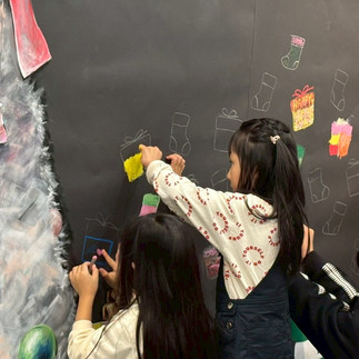 皆様の手によって完成された芸術性の高い大変美しい巨大黒板アートは、4階アベニュー広場に展示され、12月25日までのクリスマス期間中、フォトスポットとして多くのご来場者の皆さまにお楽しみいただきました。作品を背景に写真を撮影されるご家族の笑顔や、アートを通して会話が生まれる風景を目の当たりにし、アートが“思い出の景色”として日常空間に寄り添う力を改めて実感いたしました。