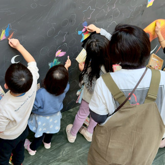 制作が進むにつれて黒板が少しずつ色づいていく様子は、会場全体に一体感とあたたかい雰囲気を生み出していました。完成した作品は、世界にひとつだけの特別なアートとして仕上がり、フォトスポットとしても多くの方にお楽しみいただきました。