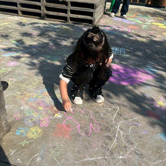 自由参加型のアウトドアチョークアートでは、お子さまを中心に多くのご家族にご参加いただき、地面いっぱいに広がる色とりどりの作品が会場を彩りました。親子で一緒に制作を楽しむ姿や、来場者同士の自然な交流も多く見られ、会場全体にあたたかな一体感が生まれていました。