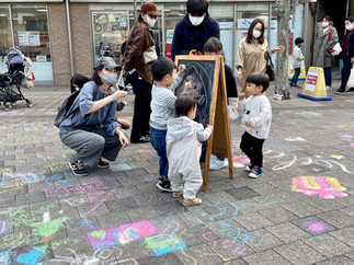 手をチョークで真っ白にして夢中に楽しく遊ぶキッズたちの姿がとても印象的で、