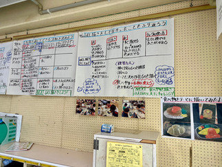 教室の黒板でオムライスの描き方を白墨で学んだりと。